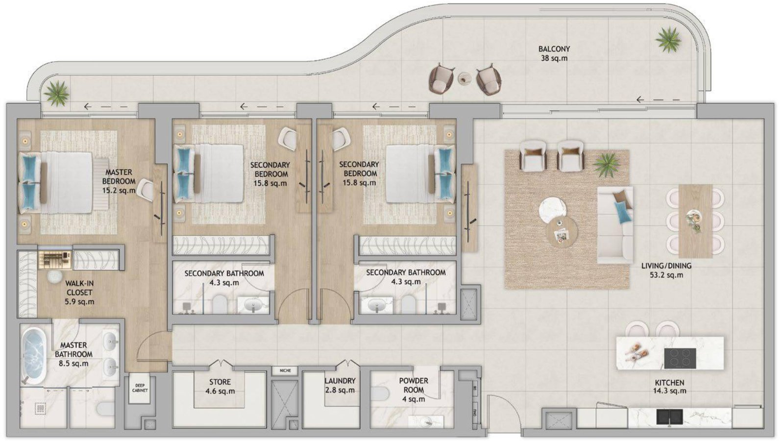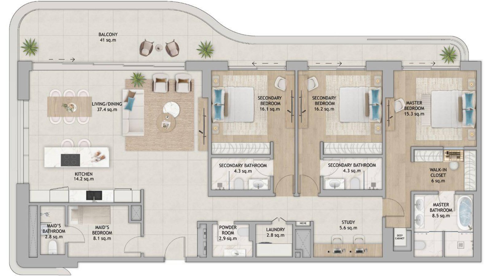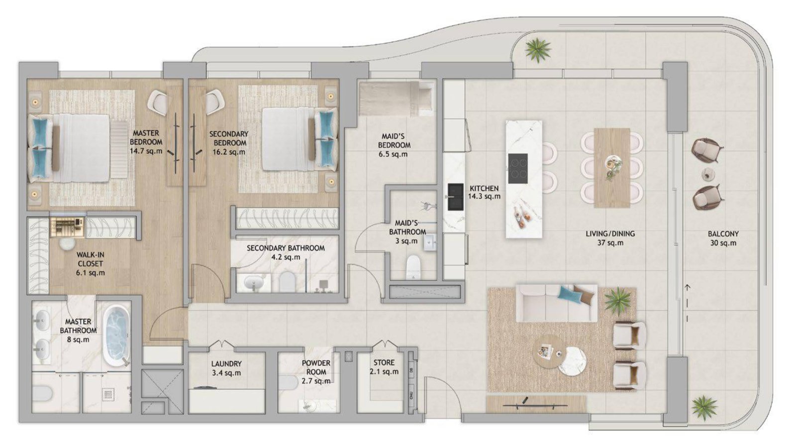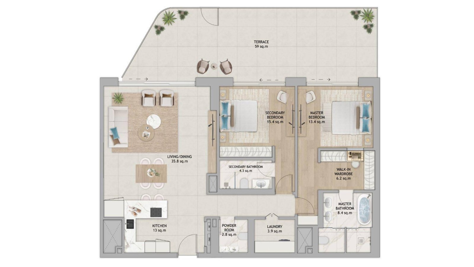 Every residence at Fahid Beach Terraces is crafted with timeless elegance, using premium finishes and smart functionality: