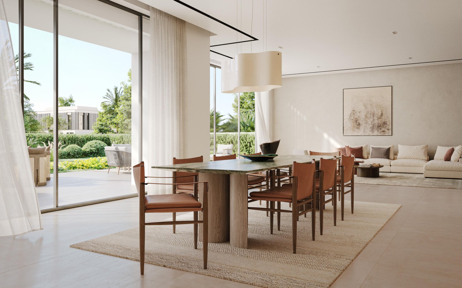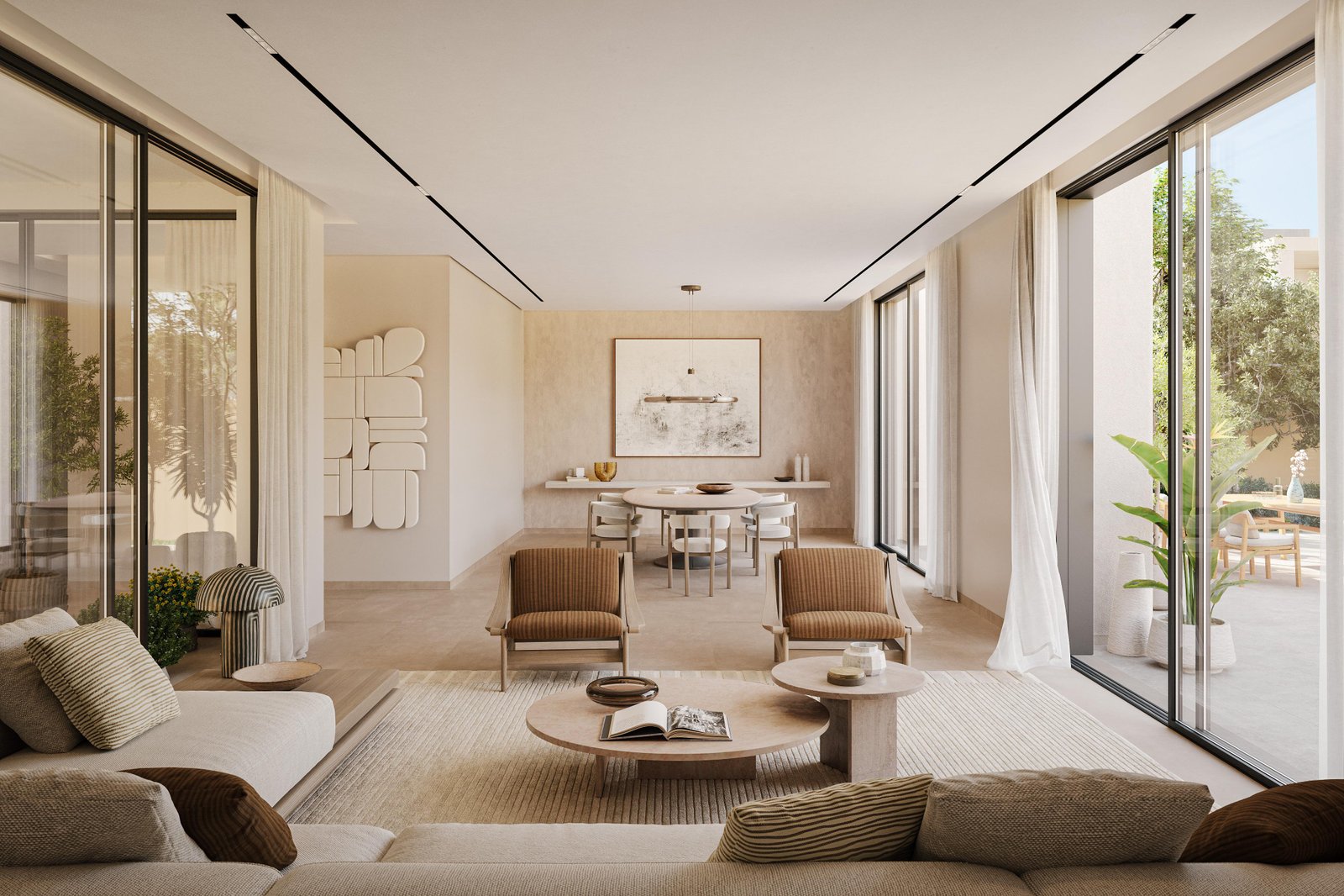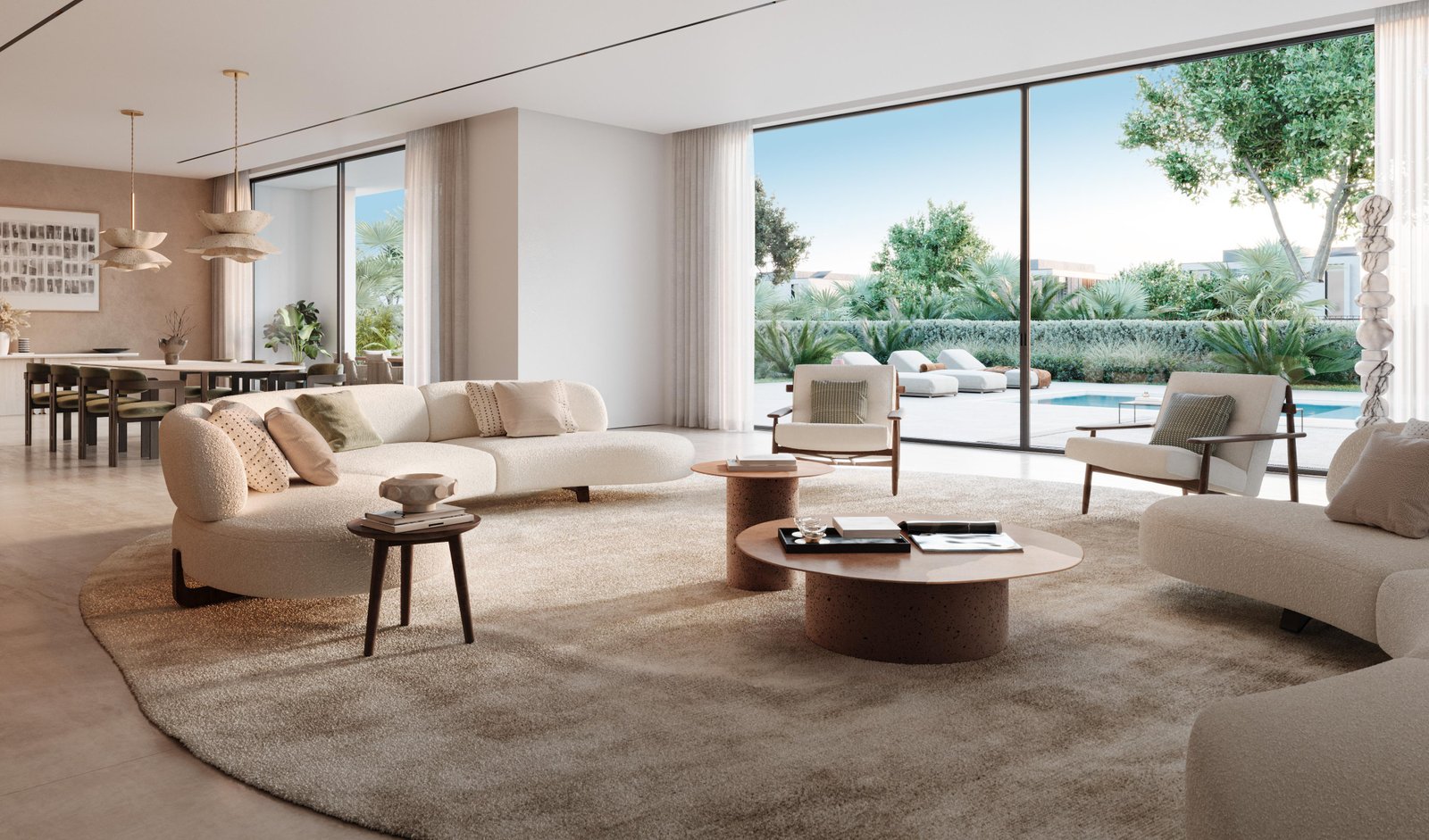 Property options include spacious four-bedroom villas starting at 3,469 sqft, elegant five-bedroom residences at 4,215 sqft, and grand six-bedroom villas reaching up to 5,176 sqft. Each home is crafted using sustainable materials and features open-plan layouts, generous majlis rooms, abundant natural light, and seamless indoor–outdoor transitions. Select units include private pools, maid’s rooms, driver’s rooms, and expansive terraces, delivering a lifestyle centered on privacy, comfort, and modern elegance.