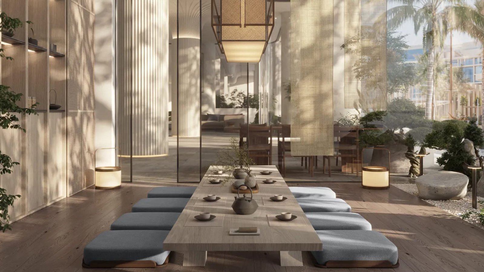 Inspired by Japanese minimalism and the protective canopy of palm trees, the architecture features undulating roofs, columns that resemble tree trunks, large verandas, natural and calming material palettes. Interiors combine elegance and functionality, with open plans, high quality finishes, smart layout design, and an emphasis on light and view.