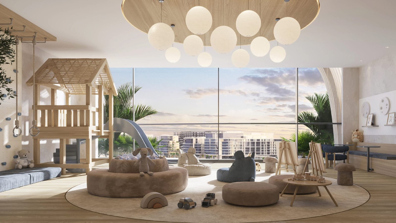 Mamsha Palm offers a curated luxury lifestyle: rooftop swimming pool with sea views, gym, bathhouse with sauna and ice bath, dedicated kids’ play area, tea room, concierge services, and a double-height lobby lounge. Ground-floor retail and dining options add convenience. Covered parking, high-speed elevators, lush landscaping, beach access and quiet green surroundings enhance the living experience.