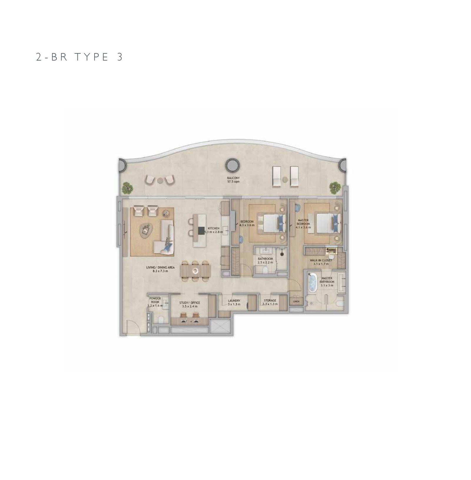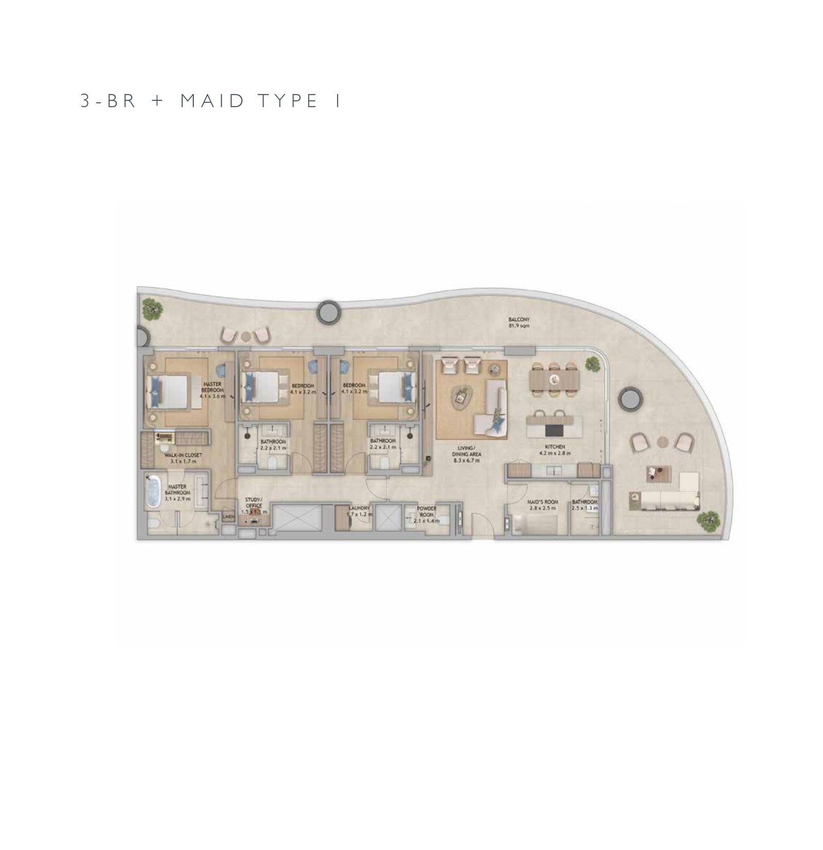 Areas begin from around 809 sq ft (104 m²) for the smaller units, extending up to 8,071 sq ft for more spacious apartments. The sky villas are bigger and offer duplex style living. Prices start from AED 3,700,000. Ownership is freehold for all nationalities. The booking requires 10% down payment, with 55% payment during the construction phase, and 35% upon handover.