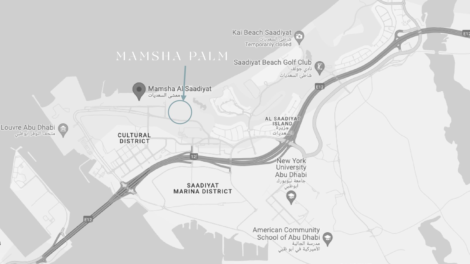 Nestled in the Saadiyat Cultural District, Mamsha Palm sits near landmarks like the Louvre Abu Dhabi, Zayed National Museum, and the future Guggenheim Abu Dhabi. It’s a few minutes from Soul Beach and the Mamsha promenade. Transport links are strong, with easy access to major highways, the airport (~20 mins), downtown, beaches, and schools. The community provides both serenity and proximity.