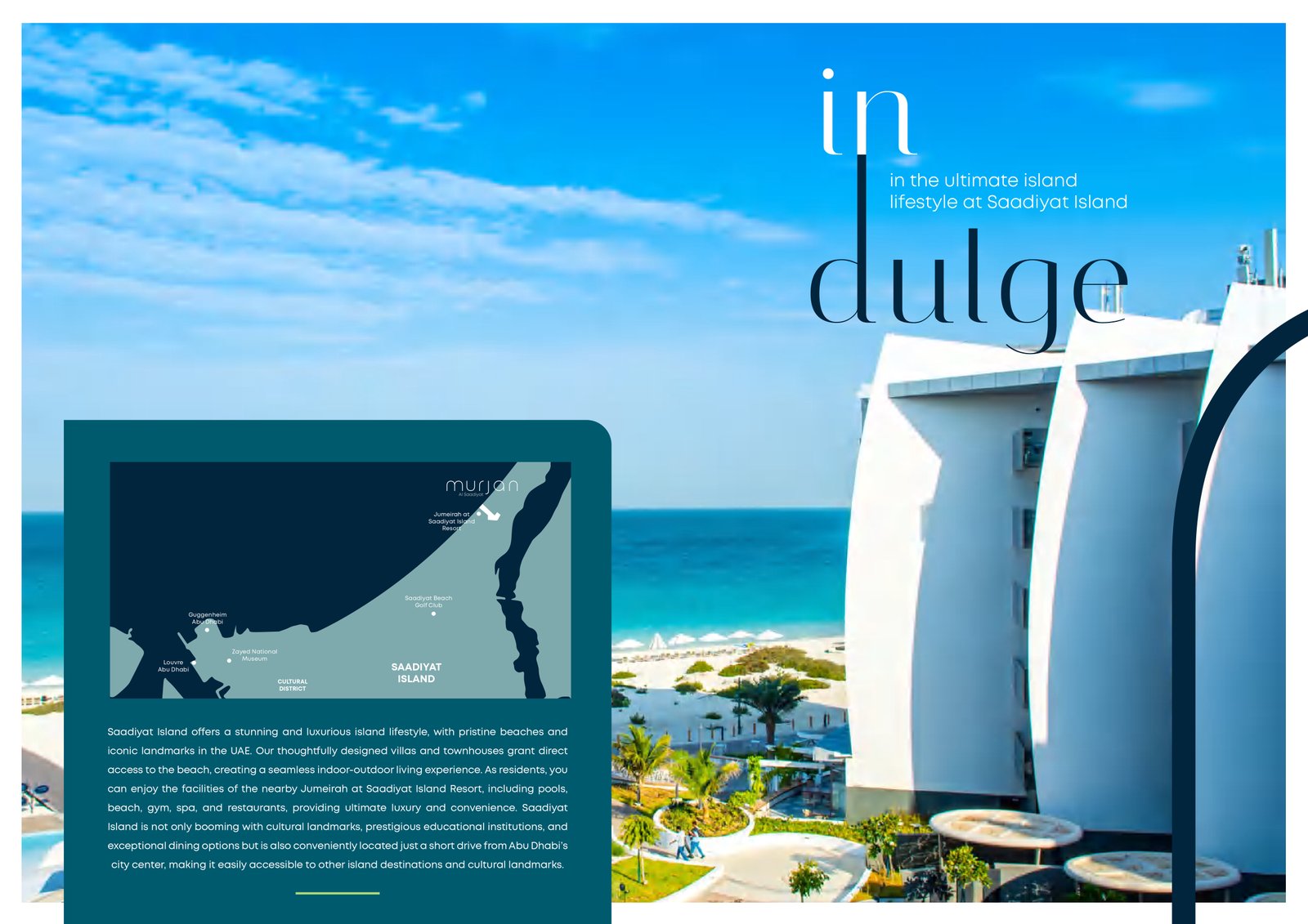 Murjan Al Saadiyat is ideally positioned on Saadiyat Island, surrounded by some of Abu Dhabi’s most iconic cultural destinations, including the Louvre Abu Dhabi, Manarat Al Saadiyat, and the upcoming Guggenheim Abu Dhabi. Prestigious educational institutions and top-tier dining venues are close by, while the city’s bustling center is just a short drive away. This exceptional location ensures residents enjoy not only tranquility but also effortless connectivity to the heart of the capital and beyond.