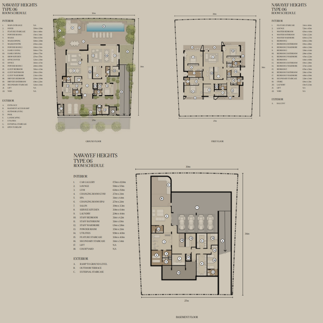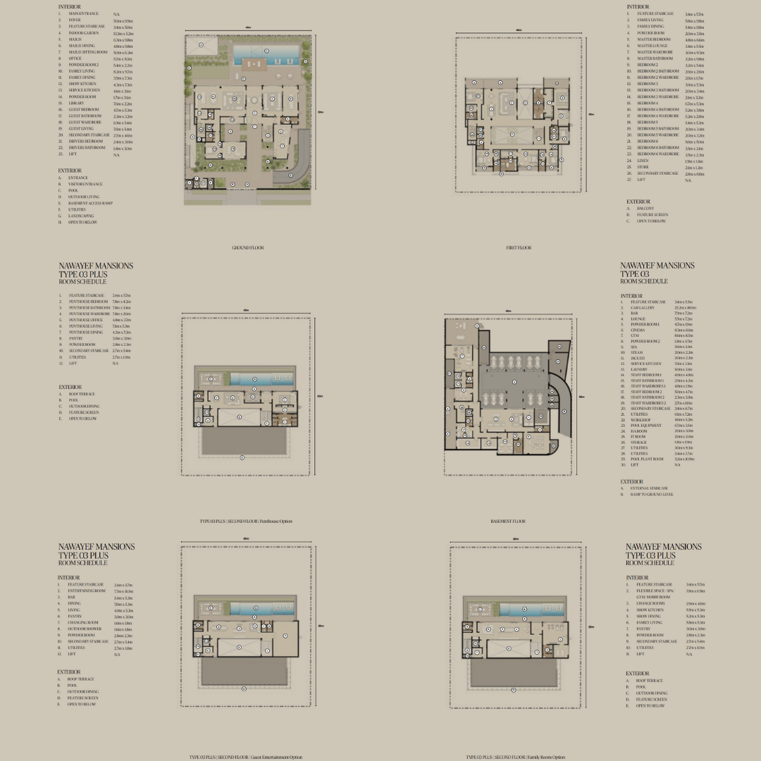 The development is composed of three curated collections: Mansions, Heights, and Homes. Layouts vary from 4-bedroom villas to grand 8-bedroom mansions, with spaces spanning 370 sqm to 3,800 sqm.