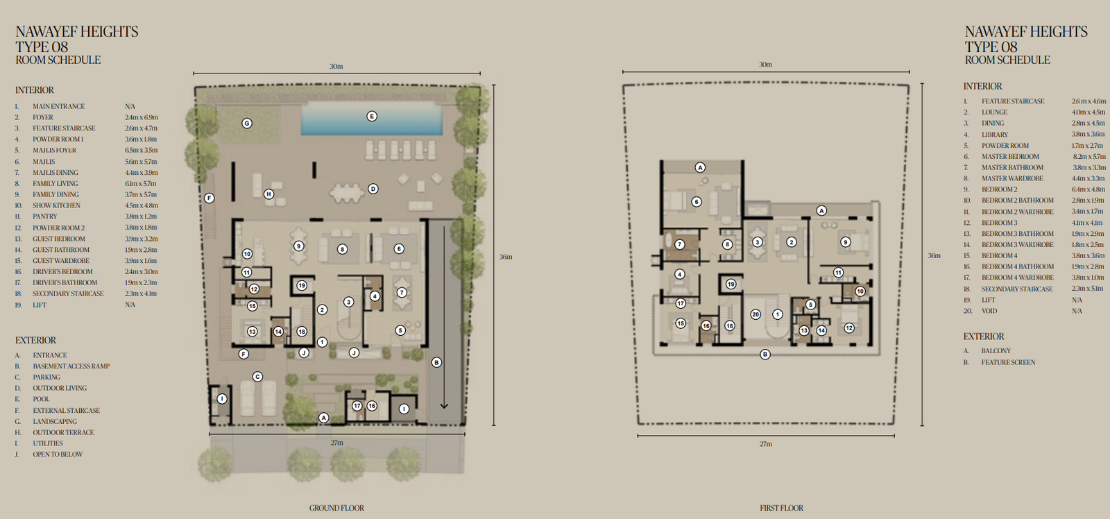 The Mansions range from approximately 18,138 to 29,063 square feet, the Heights Villas from 12,885 to 21,011 square feet, and the Homes from 3,983 to 5,038 square feet, each crafted to maximise privacy, light, and panoramic views.
