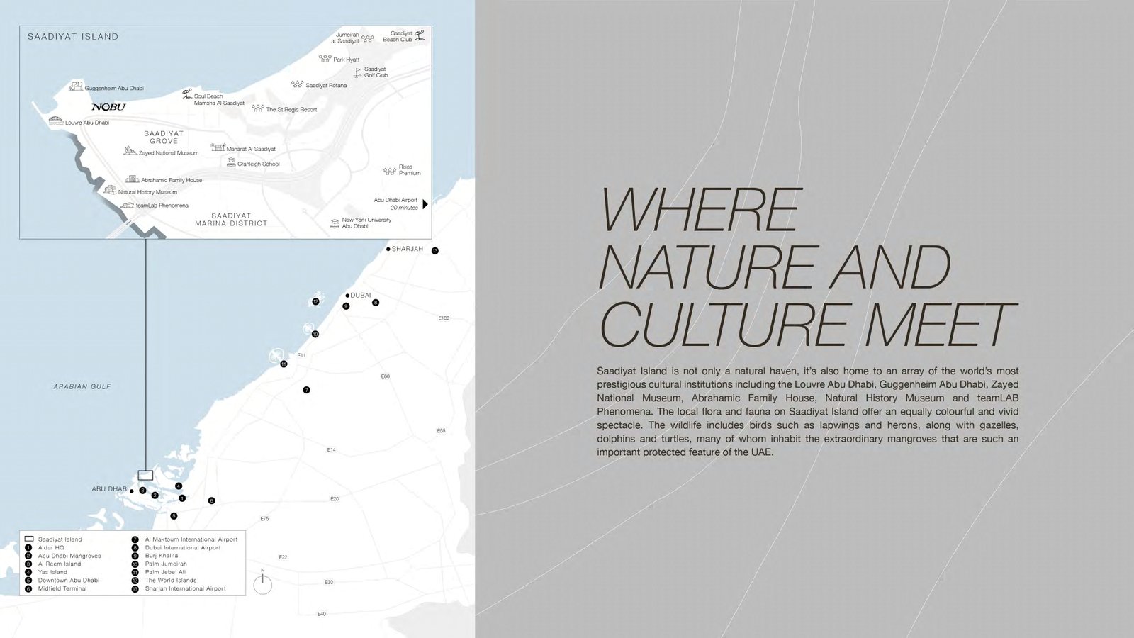 Positioned beside the Guggenheim Abu Dhabi, Nobu Residences redefine luxury living. Elevated gardens, a cutting-edge gym, a private movie room, and exclusive lounge access elevate the residential experience to unparalleled heights.