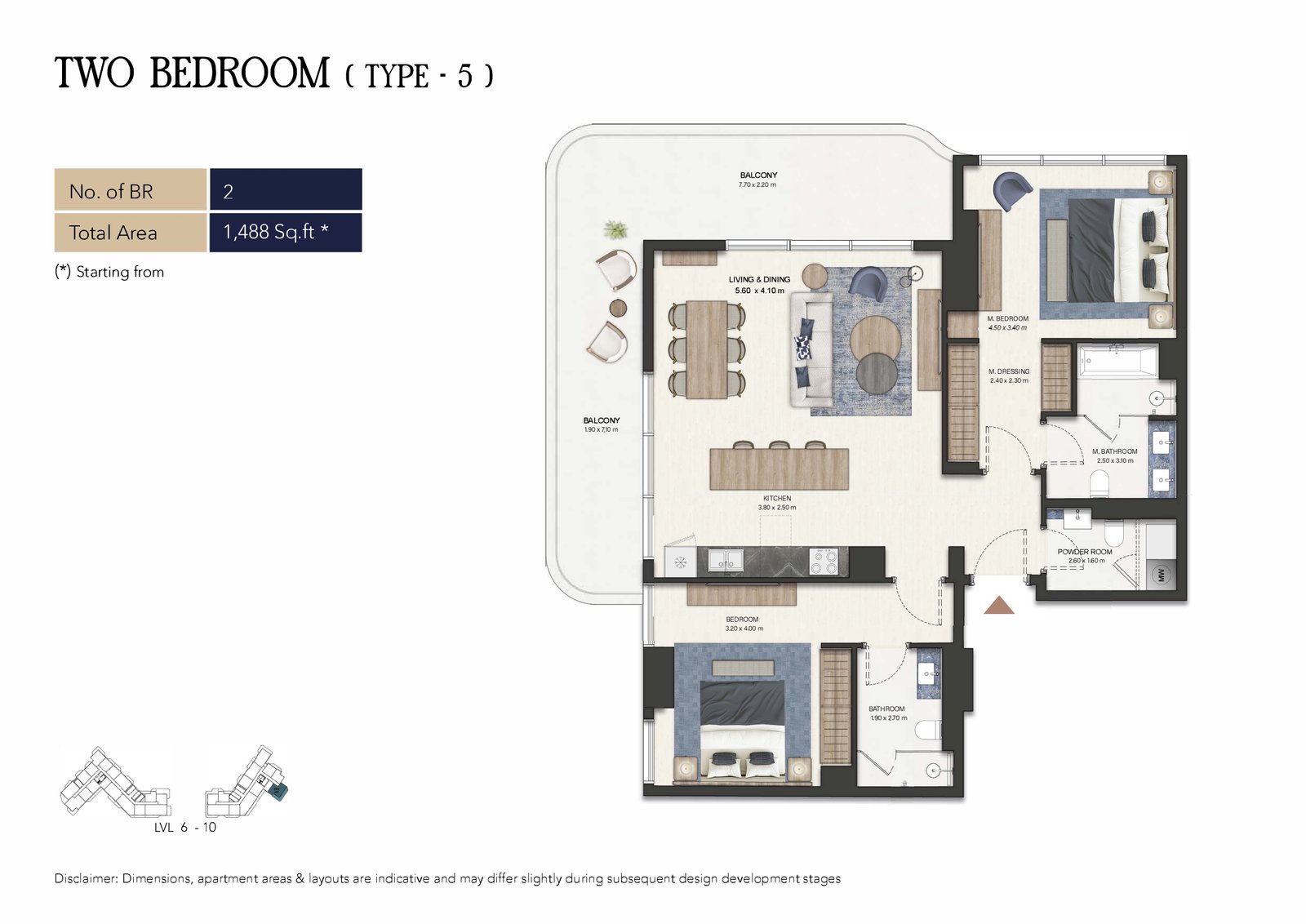 2B/3B water-facing simplex units on podium levels