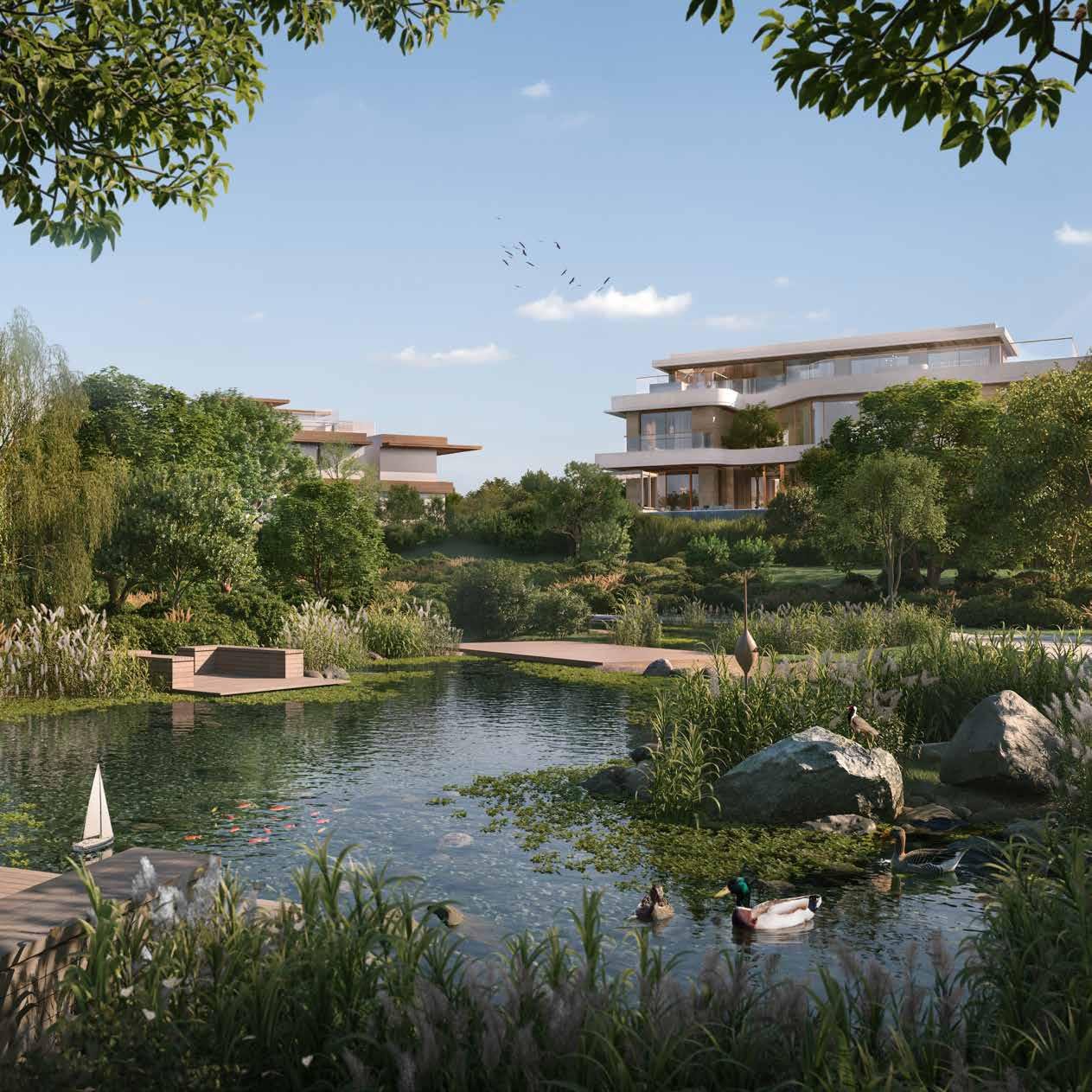 Adventure & Sports Facilities: Comprehensive recreational offerings including tennis, basketball, padel, and multi-use (MUGA) courts, alongside nature-inspired pools, streams, and outdoor activity areas designed for both adults and children.