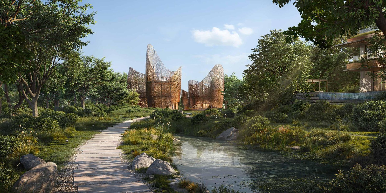 The Nest Pavilion & Central Park: A nature-centric hub for relaxation and recreation, featuring rooftop stargazing, birdwatching, a farm-to-table café, meditation decks, fitness zones, and immersive nature trails that promote wellness and community engagement.