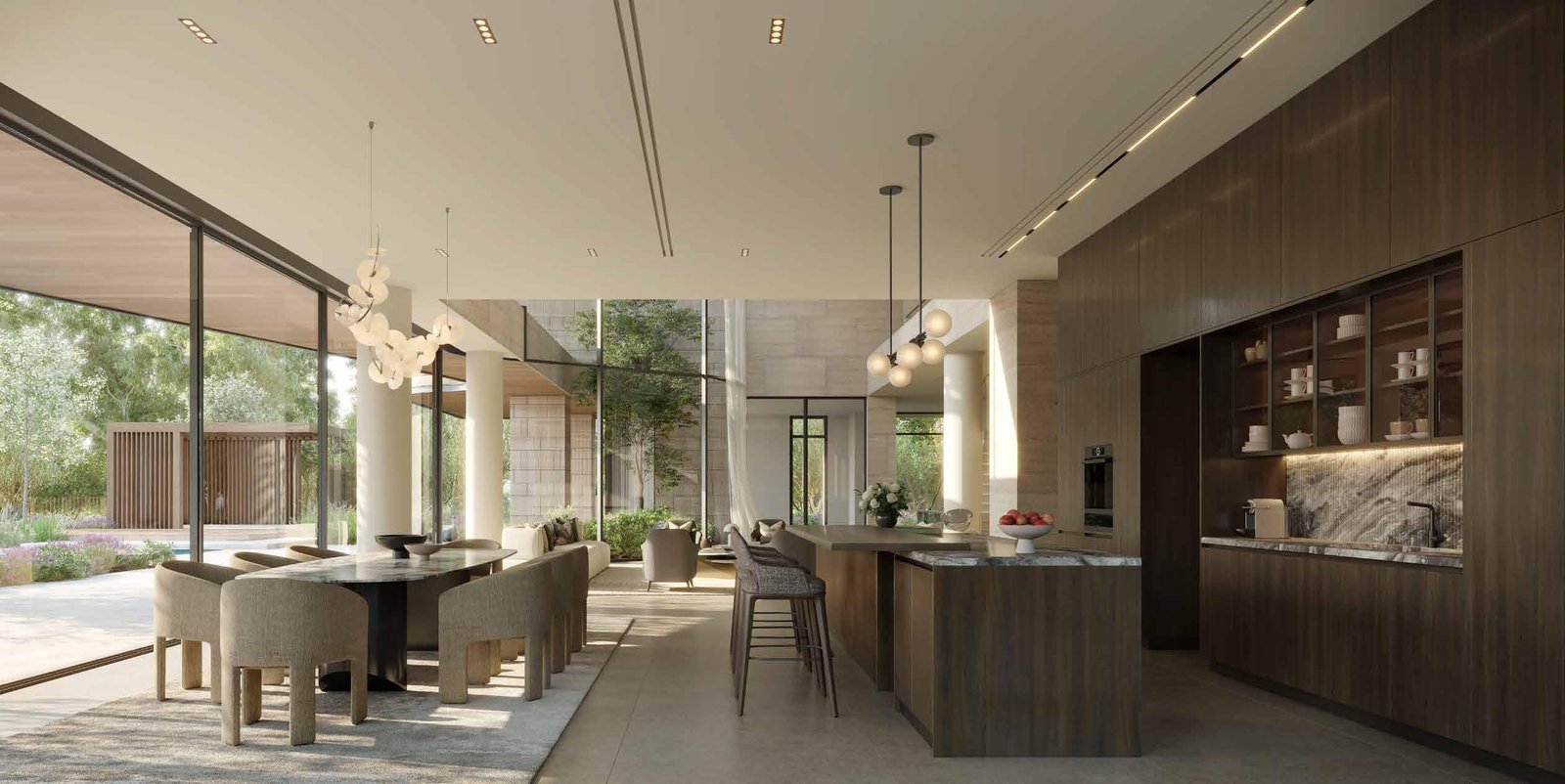 The architecture of Moringa Mansions highlights modern design harmonized with nature, offering open-plan living areas that flow seamlessly to outdoor terraces, spacious bedrooms, and spa-inspired bathrooms. Interior schemes can be tailored to homeowners’ preferences, with options for light or dark finishes, energy-efficient systems, and eco-friendly materials that reflect the community’s commitment to sustainability.
