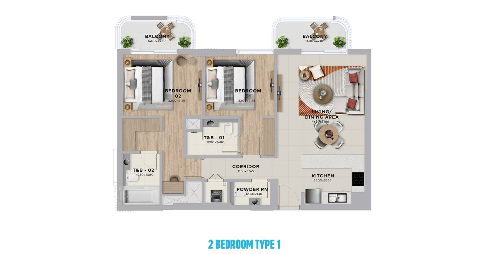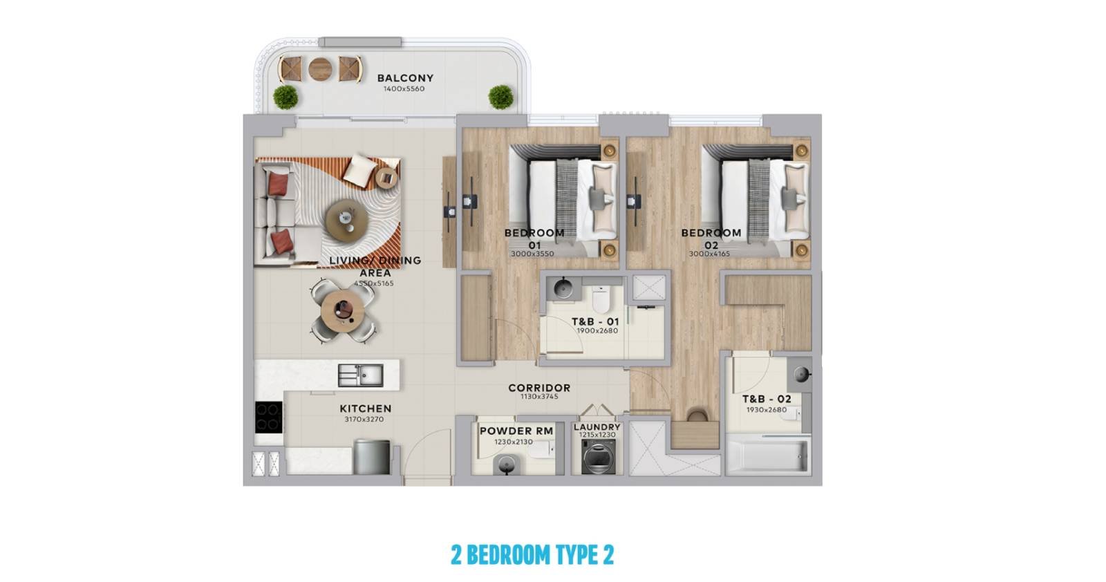2 bedroom apartments – 1,152 sqft | From AED 2.45M | 141 units