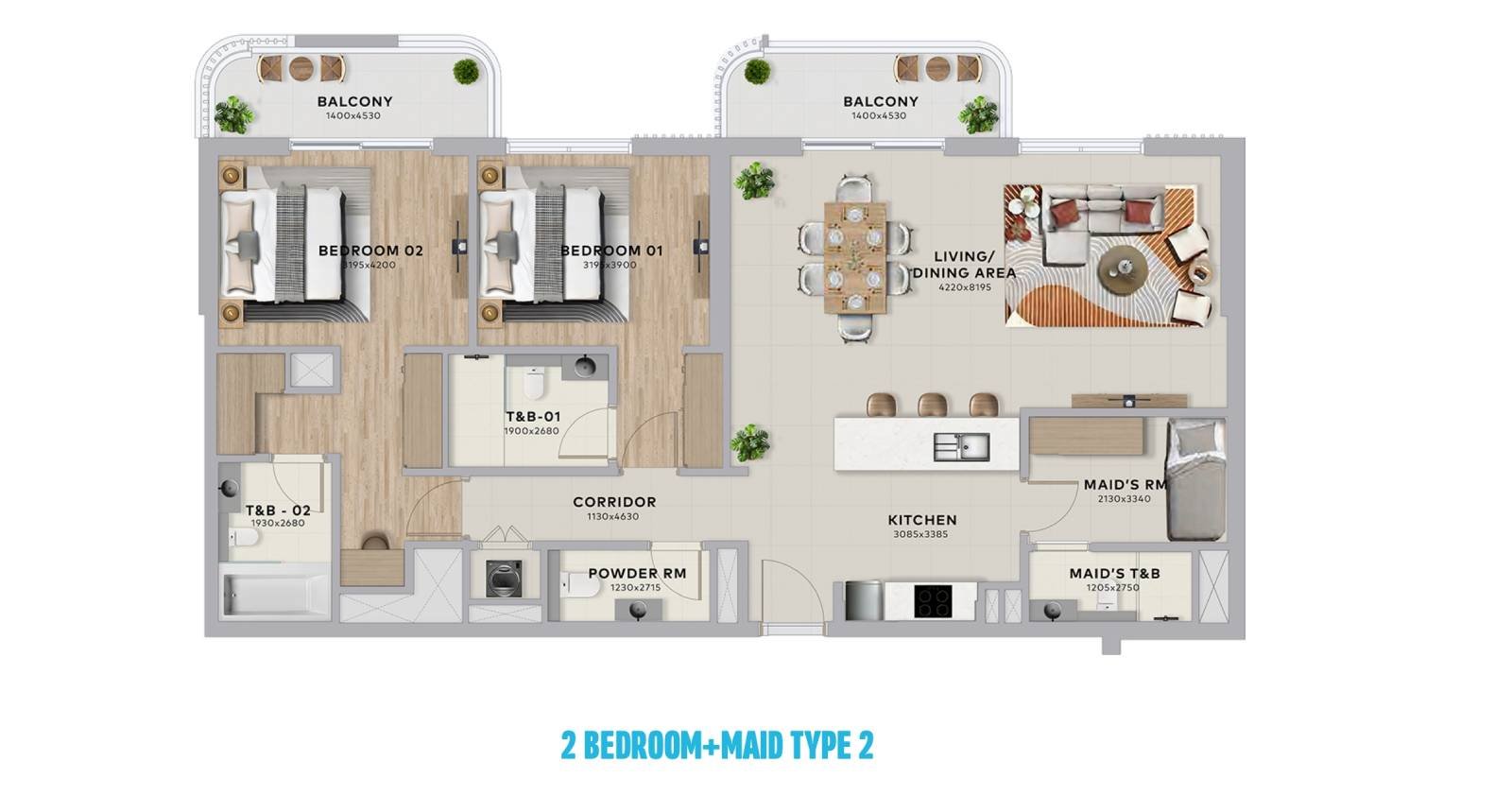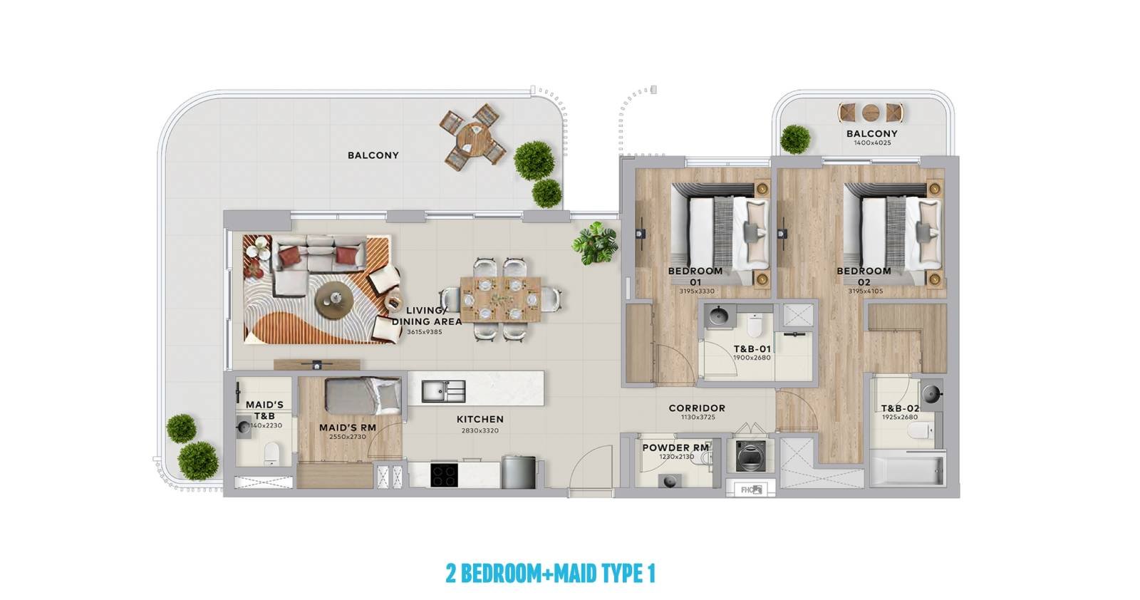 2 bedroom + maid’s room – 1,658 sqft | From AED 3.3M | 69 units