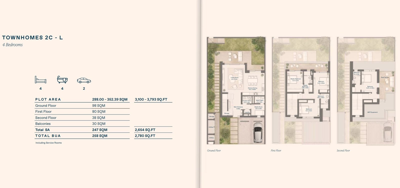 Each villa and townhouse at Bayn Villas is designed to maximize natural light, waterfront views, and open living. Homes feature expansive layouts, double-height ceilings, designer kitchens, ensuite bedrooms, and large terraces or balconies. Lagoon-facing properties offer direct access to water features and landscaped promenades. Every residence integrates sustainable elements and modern finishes to create a luxurious yet practical living environment.