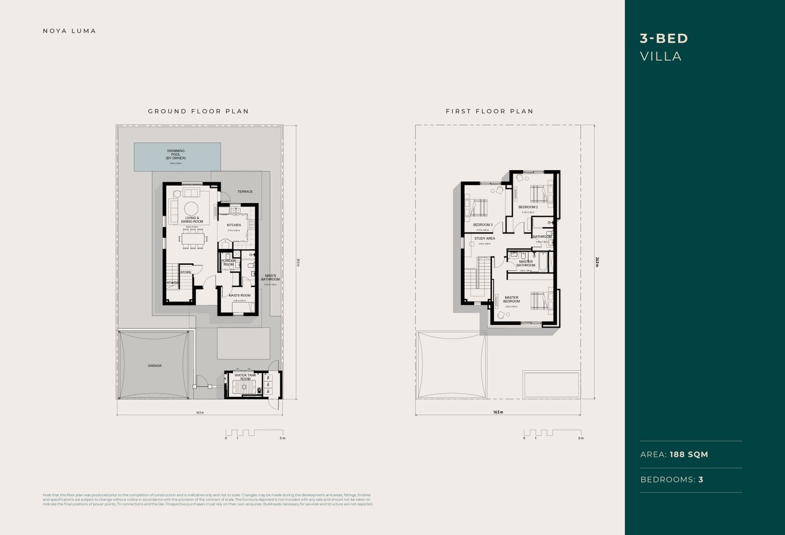 Features: The largest options, 5 bedroom villas, provide up to 3,111 sqft of luxury living, including a guest bedroom, multi-purpose rooms, terraces, and generous storage, complemented by premium finishes and modern architectural details that elevate everyday living.
